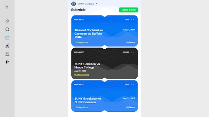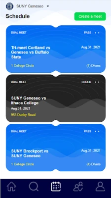 Registered users can follow live results and monitor the leaderboard and view detailed information about diver performance. Team members can capture video of the dive so that it is automatically saved to the diving sheet. No more searching through your phone for a video of a dive. Simply open the dive sheet and expand the dive to see the video. Meet directors can create paid invitationals so that divers can pay when submitting dive sheets. From the smallest dual meet to the largest national invitationals to summer leagues, Dive Live can run any meet.