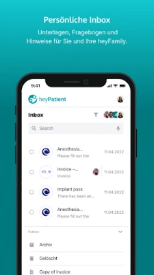 Health is personal. Every story is different. You as a person are always at the centre. The app helps you and your loved ones to keep track of important appointments, information and instructions and keeps you up to date with everything important at all times. So that in your story, successful treatment and your health is always at the centre. The rest is taken care of by heyPatient.