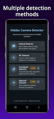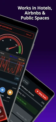 Find hidden cameras (spy cameras) with ease using our Hidden Camera Detector app. It includes multiple detection methods such as electronic/metal detector, infrared (negative) detector, composite detector, and WiFi signal detector to help you ensure your privacy.