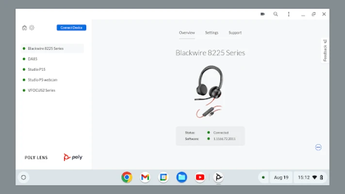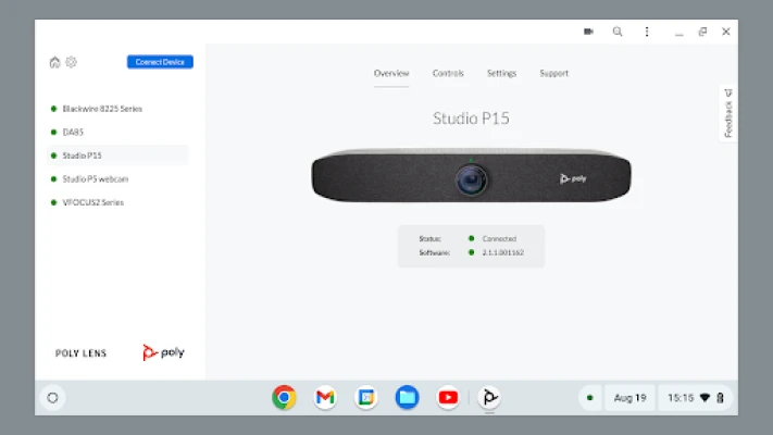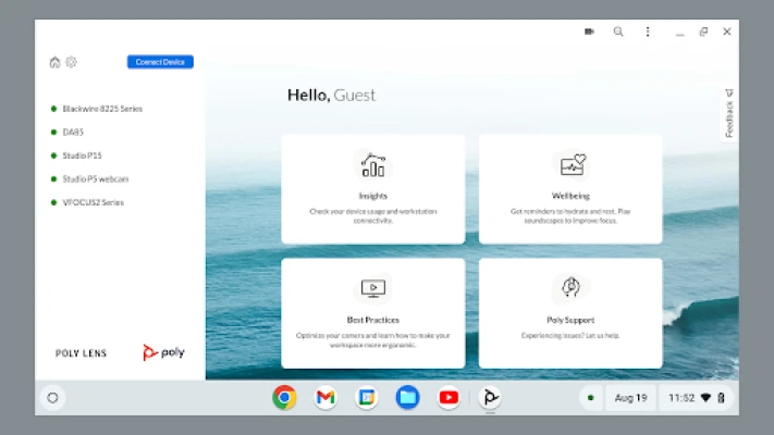 The Poly Lens Web App is a progressive webapp that works on ChromeOS devices and Chromium based browsers such as Chrome and Edge. You can install it as a web app or directly use it in the browser. It supports multiple languages:
