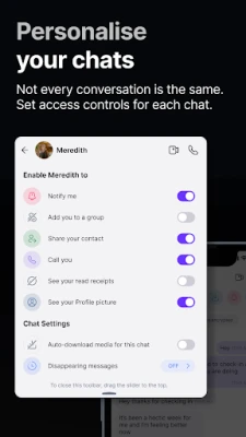 - All chats are end-to-end encrypted with an option to make them disappear.