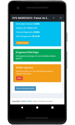 - Configuração do preço do ingresso, tempo determinado e valor por minuto excedente;